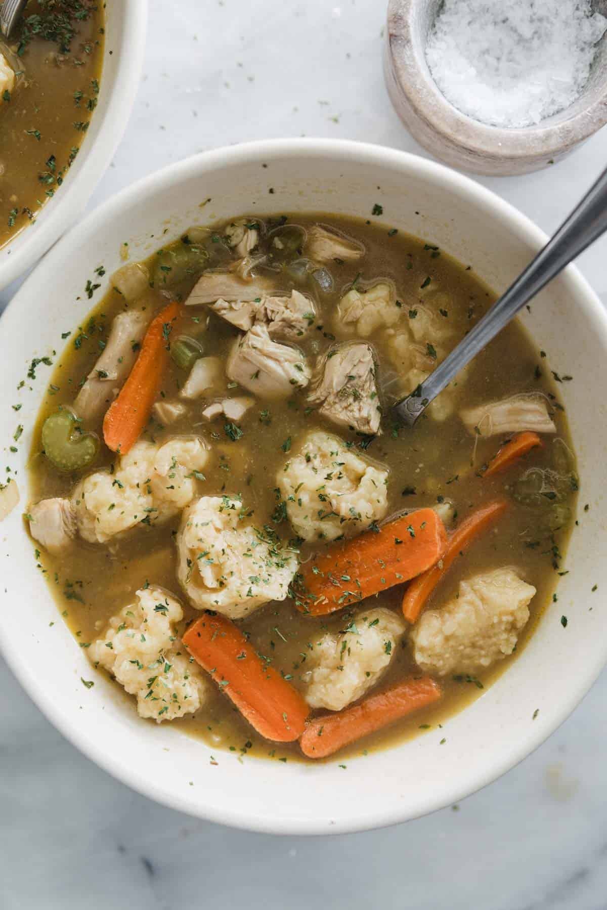 - Keep the dumplings small: Smaller dumplings cook more evenly and create a better texture, so don’t make the spoonfuls too large when you are dropping them into the soup.